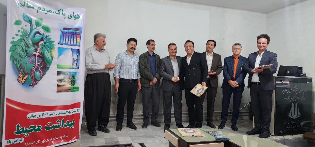 به گزارش روابط عمومی شبکه بهداشت و درمان شهرستان دیواندره، همزمان با فرا رسیدن چهارم مهر ماه روز جهانی بهداشت محیط، طی مراسمی با حضور مدیر شبکه، رئیس مرکز بهداشت و دیگر مسئولین، ضمن تبریک روز جهانی بهداشت محیط و تقدیر از زحمات پرسنل این حوزه، از کارشناسان و بازرسان بهداشت محیط شهرستان دیواندره با اهدای لوح تقدیر و یادبودهای نفیس، تجلیل صورت گرفت.