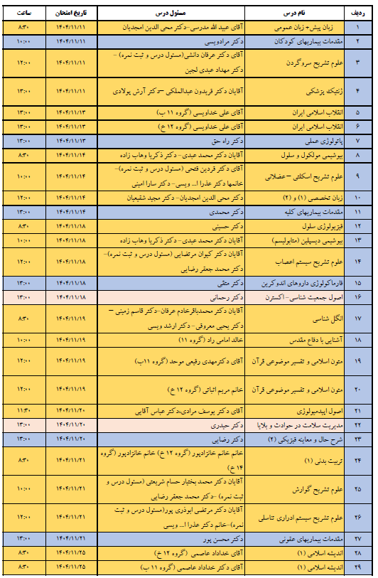 دانلود امتحانات پایان ترم دانشکده پزشکی