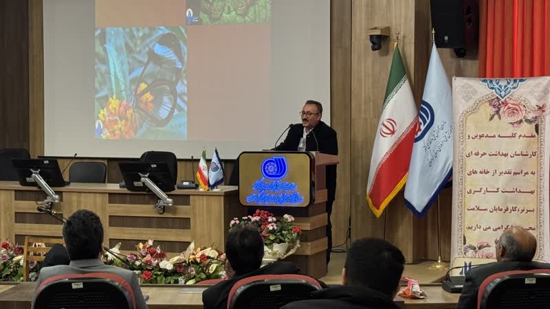 در این مراسم که با حضور بیش از ۱۰۰ نفر از کارشناسان، مدیران ارشد و کارفرمایان برگزار شد، دکتر خالد رحمانی، معاون امور بهداشتی دانشگاه علوم پزشکی کردستان، ضمن تقدیر از تلاشهای کارکنان بهداشت حرفهای، به نقش مؤثر این قشر در تأمین، حفظ و ارتقای سلامت کارگران در محیطهای صنعتی اشاره کرد و به تشریح و تحلیل شاخصهای بهداشتی در حوزه بهداشت حرفهای پرداخت.