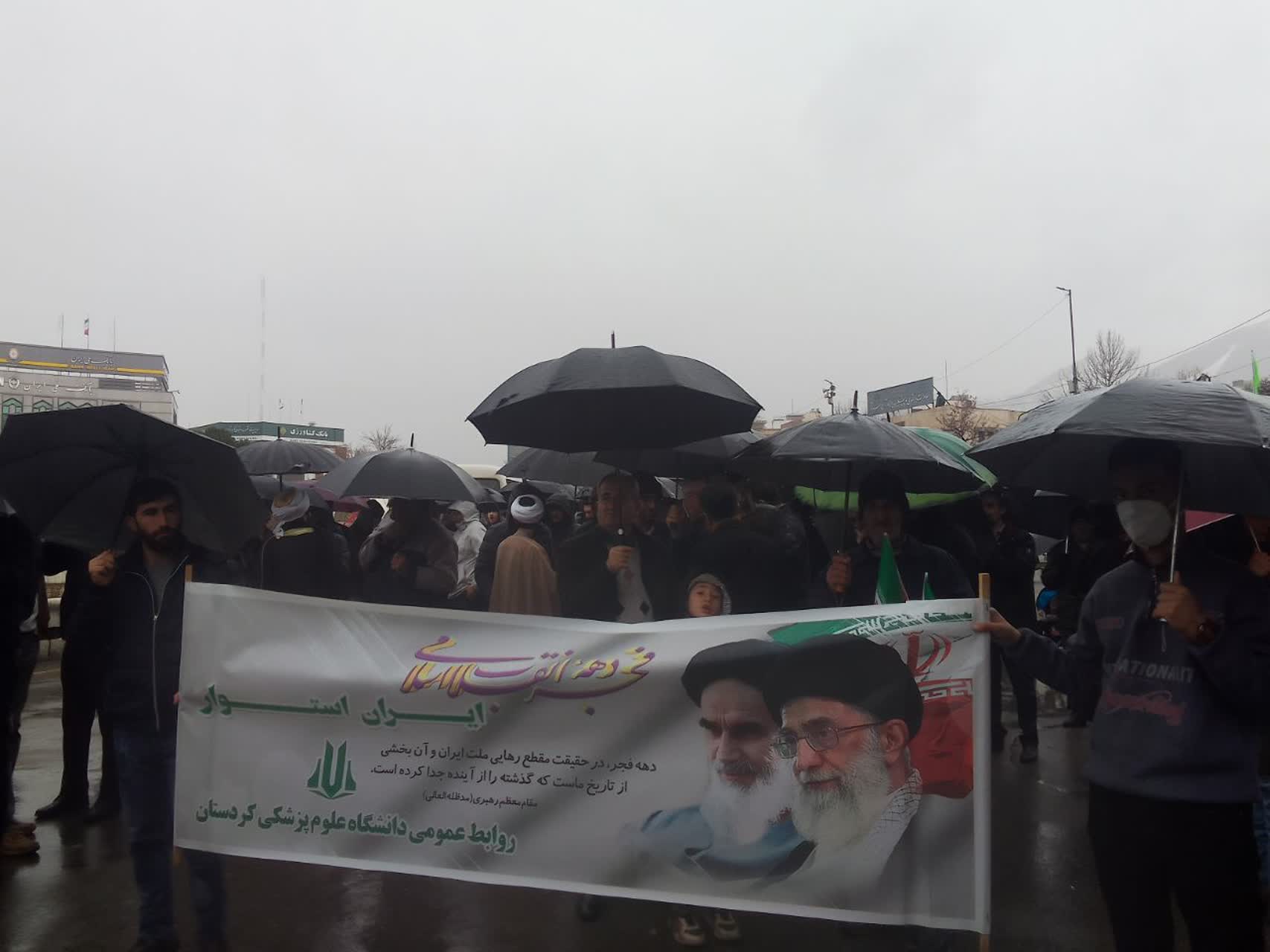به گزارش روابط عمومی دانشگاه علوم پزشکی کردستان، مسئولین، اساتید، کارکنان، دانشجویان و کادر دانشگاه صبح امروز با حضور در مسیرهای تعیینشده راهپیمایی در سنندج و سایر شهرهای استان، در مراسم بزرگداشت سالروز پیروزی انقلاب اسلامی شرکت کردند.
