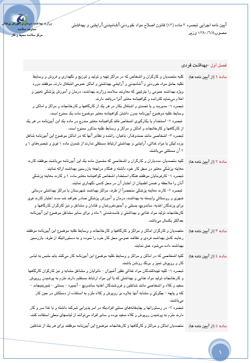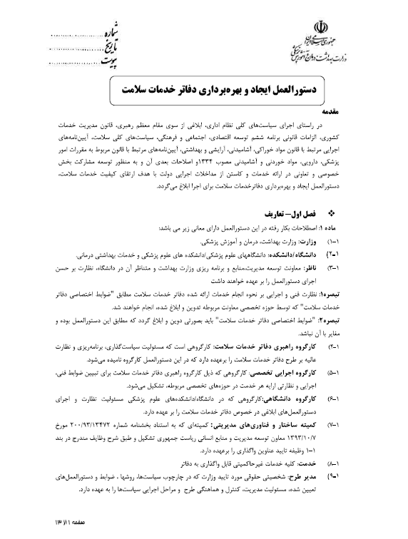 دستورالعمل صدور کارت بهداشت |